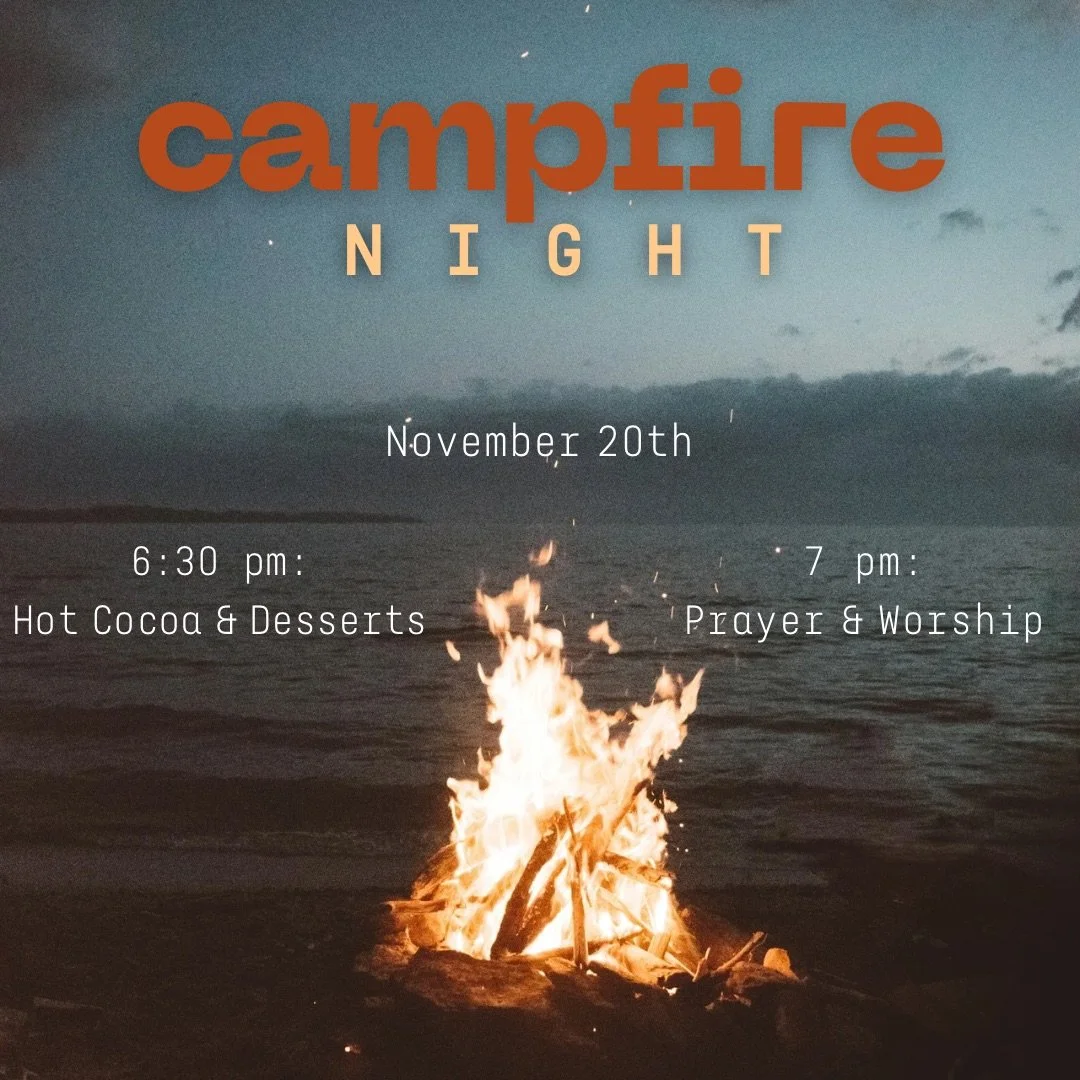 Join us for Campfire Night with The Refuge Thursday, Nov 20 at 6:30 PM! Campfire night marks a special time for us to gather and sing, pray and fellowship with one another! Come gather around the fire, enjoy coffee and hot chocolate from Scott's coffee and don't forget to invite a friend and your favorite dessert to share! We can't wait to spend this special night with you!
